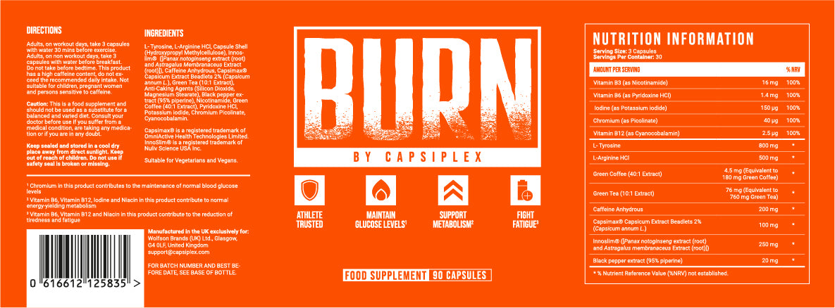 BURN es diferente de muchos otros productos en el mercado porque enumera todos los ingredientes y la cantidad de cada uno. Aquí no se encuentran ingredientes "secretos" ni "mezclas patentadas".